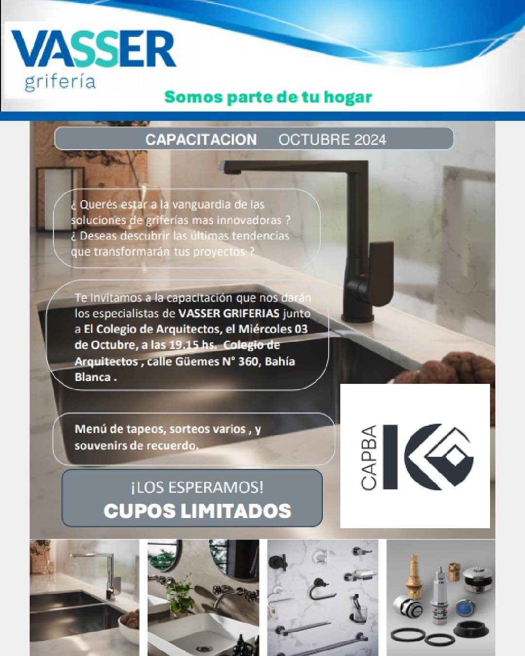 Te invitamos a la Capacitación que nos darán los especialistas de VASSER GRIFERÍAS junto al Colegio de Arquitectos.