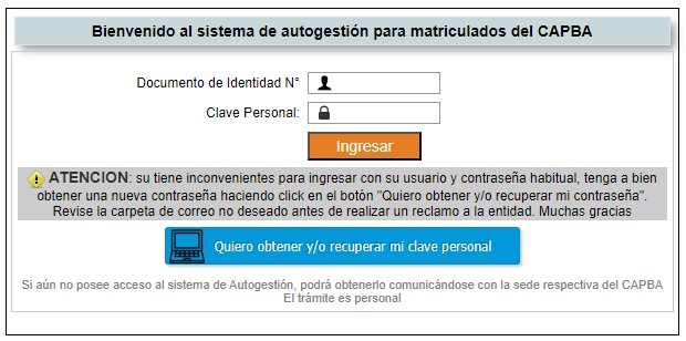 Deberá accederse al sitio enlínea.capba.org.ar en la opción de “autogestión para matriculados”, donde el interesado deberá colocar su DNI y luego indicar “quiero obtener y/o recuperar mi clave personal”, iniciando así el proceso de generación de su contraseña.